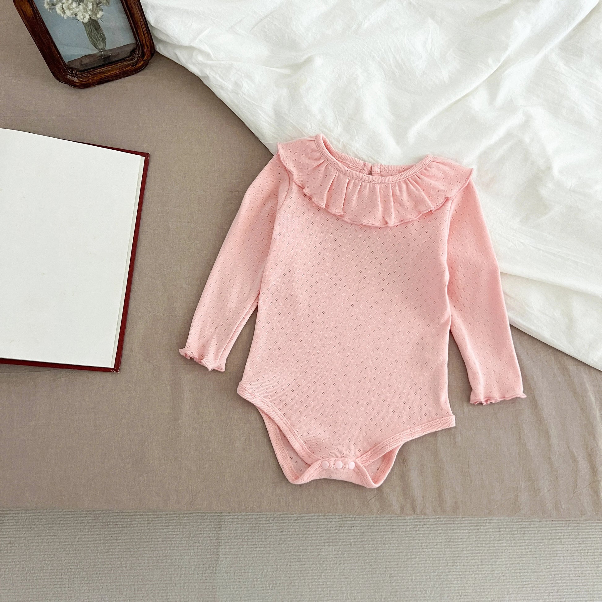 Su cierre con botones permite cambiar fácilmente el pañal, mientras que su corte amplio asegura libertad de movimiento. Ideal para bebés que están descubriendo el mundo con curiosidad y alegría.